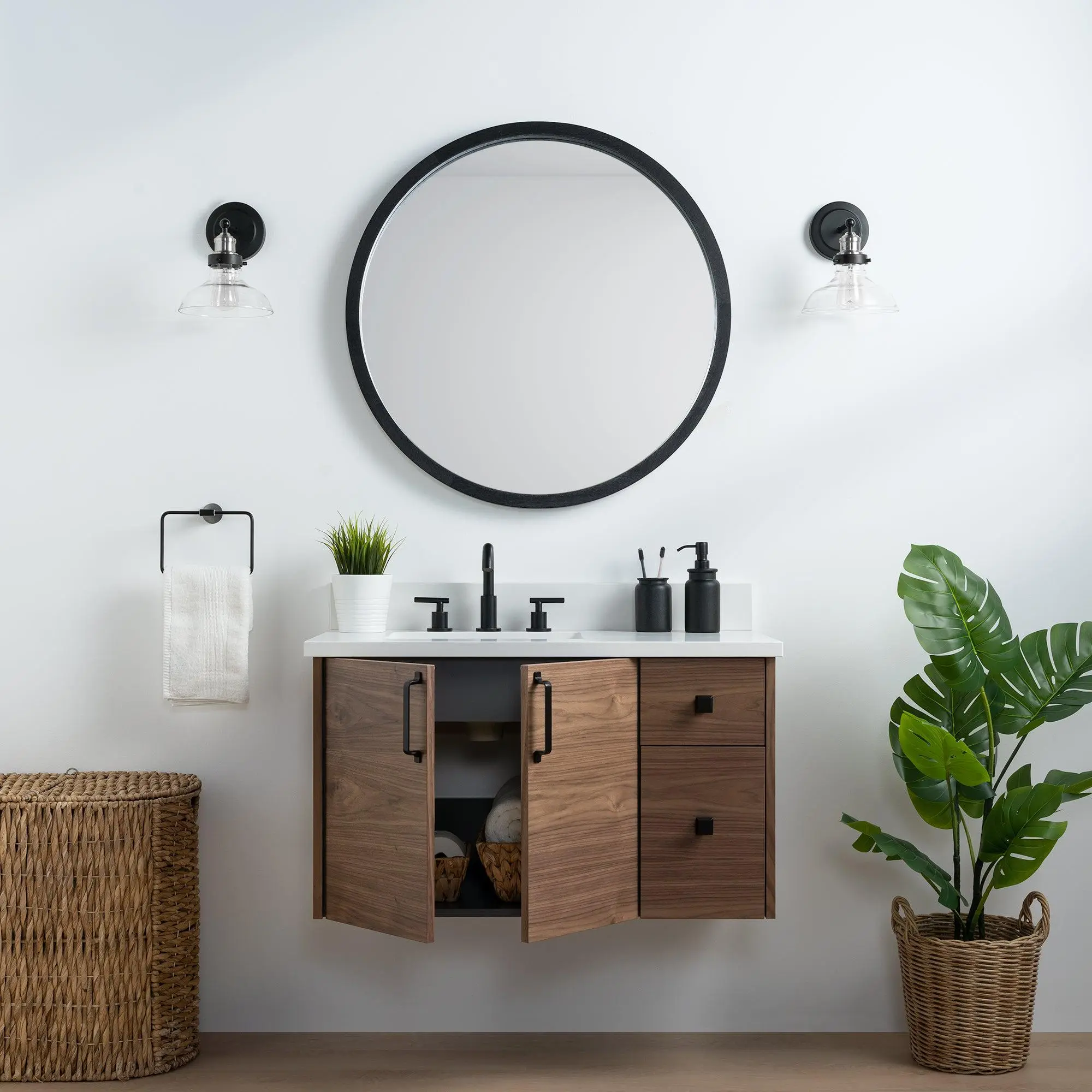 Austin SLIM 36" Wall Mount American Black Walnut Bathroom Vanity, Left Sink is proudly made in Canada.