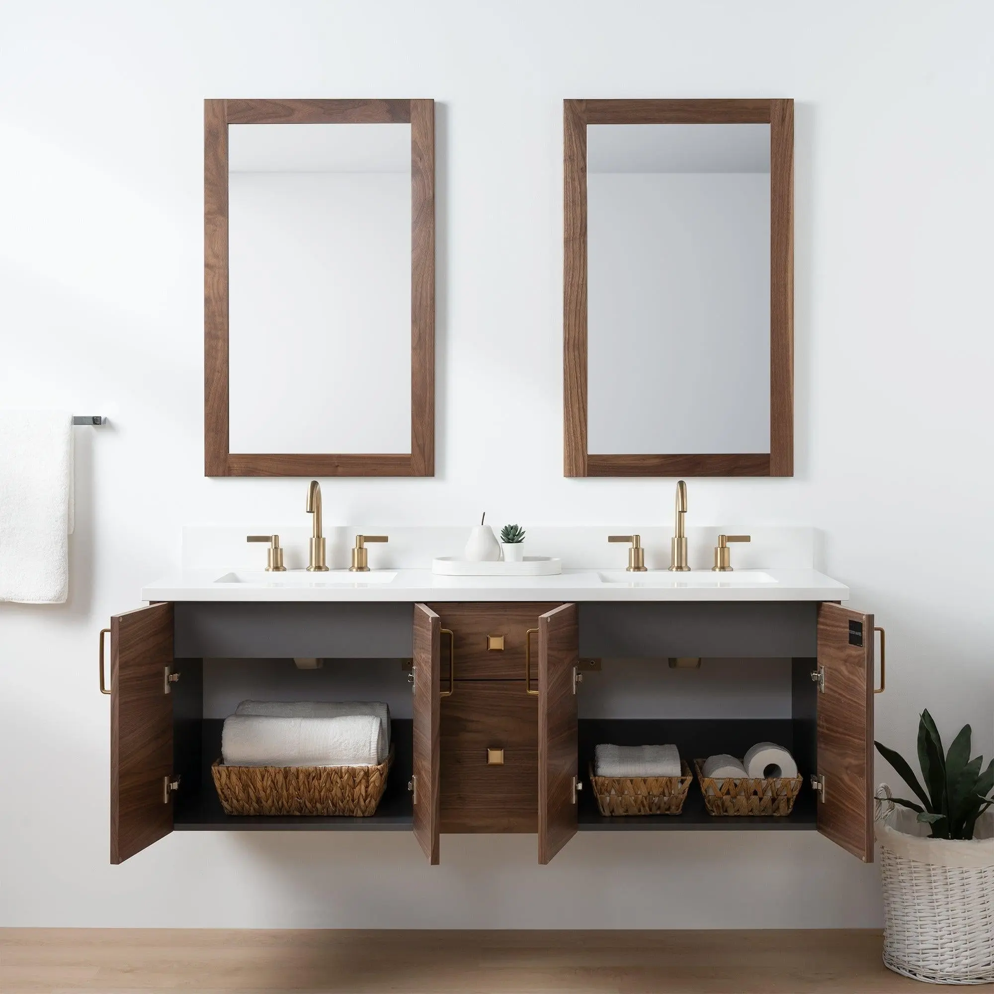 Austin SLIM 60" Wall Mount American Black Walnut Bathroom Vanity, Double Sink is proudly made in Canada.